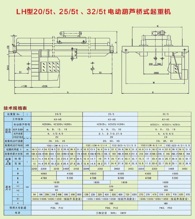 LH型20t、25t、32t電動(dòng)葫蘆橋式起重機(jī)