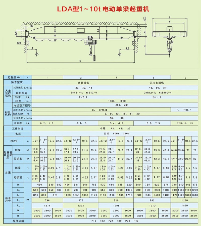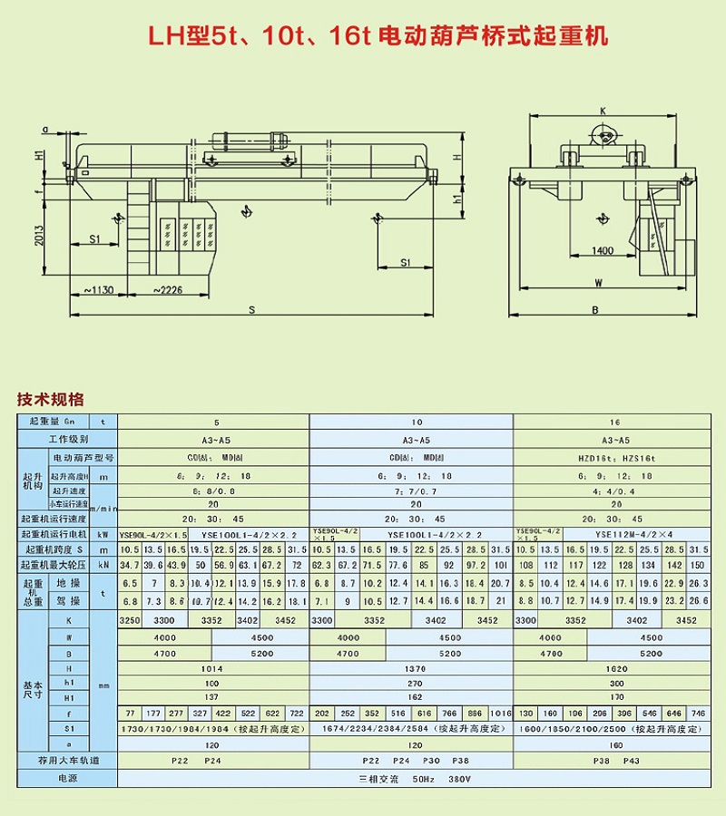 LH型5t、10t、16t電動(dòng)葫蘆橋式起重機(jī)