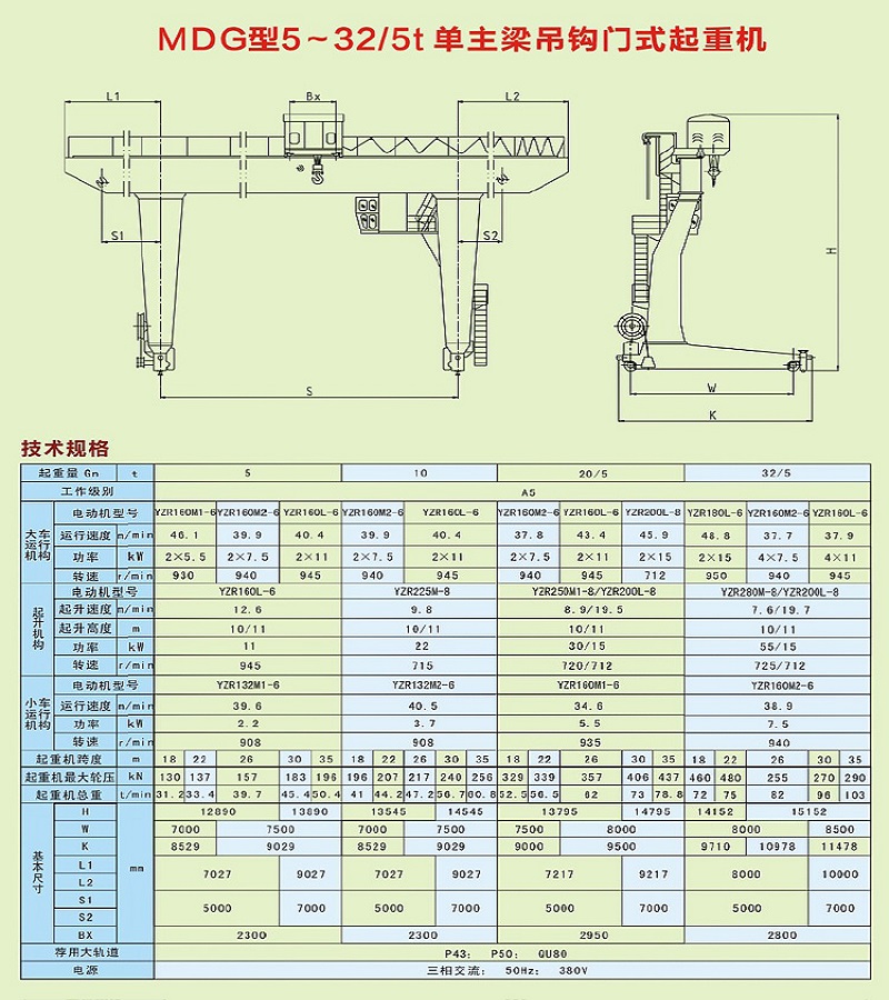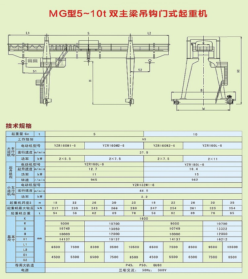 MG型5-10t雙主梁門式起重機(jī)